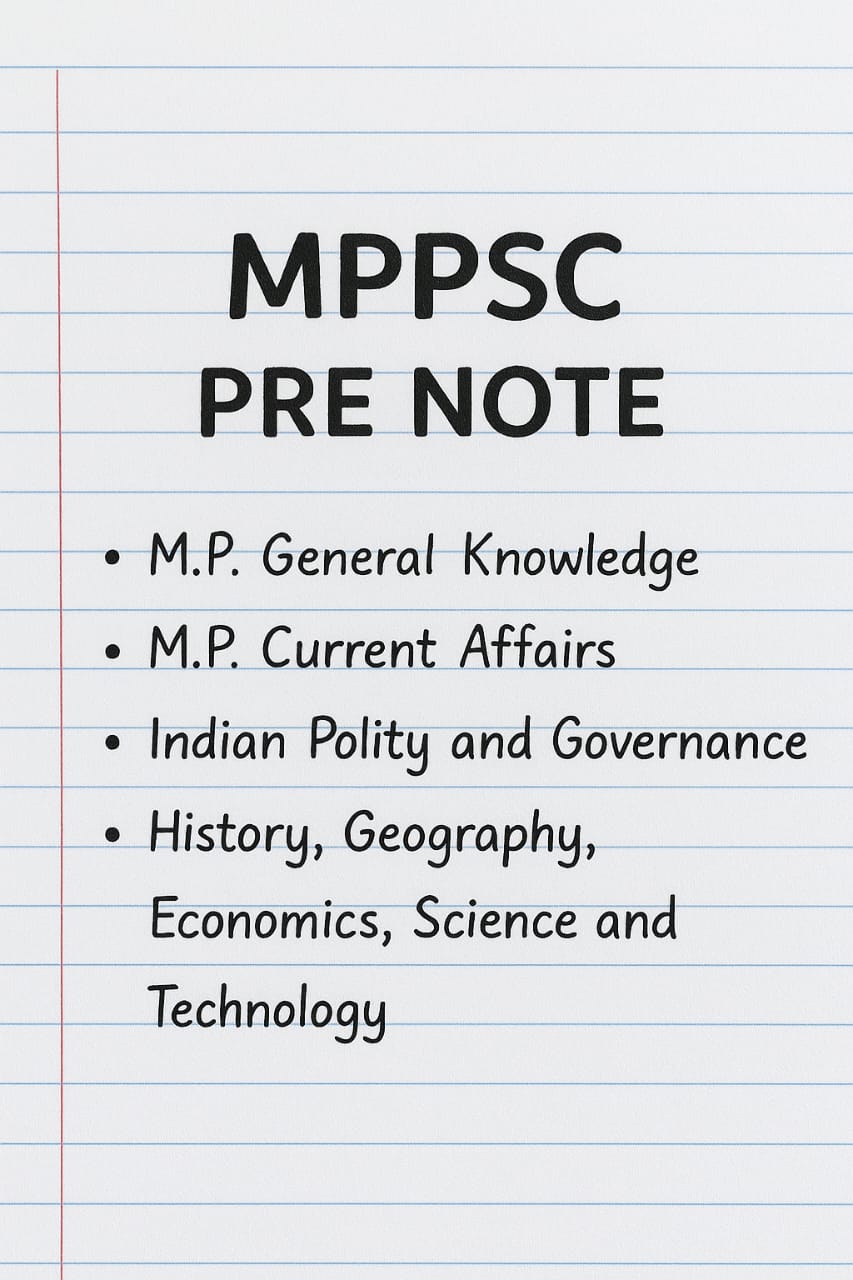 MPPSC प्रारंभिक परीक्षा की प्रभावी तैयारी के लिए तैयार किए गए ये संक्षिप्त नोट्स मध्य प्रदेश सामान्य ज्ञान, करंट अफेयर्स, भारतीय शासन व्यवस्था, इतिहास, भूगोल, अर्थव्यवस्था तथा विज्ञान-प्रौद्योगिकी जैसे महत्वपूर्ण विषयों को सरल भाषा में समझाते हैं।